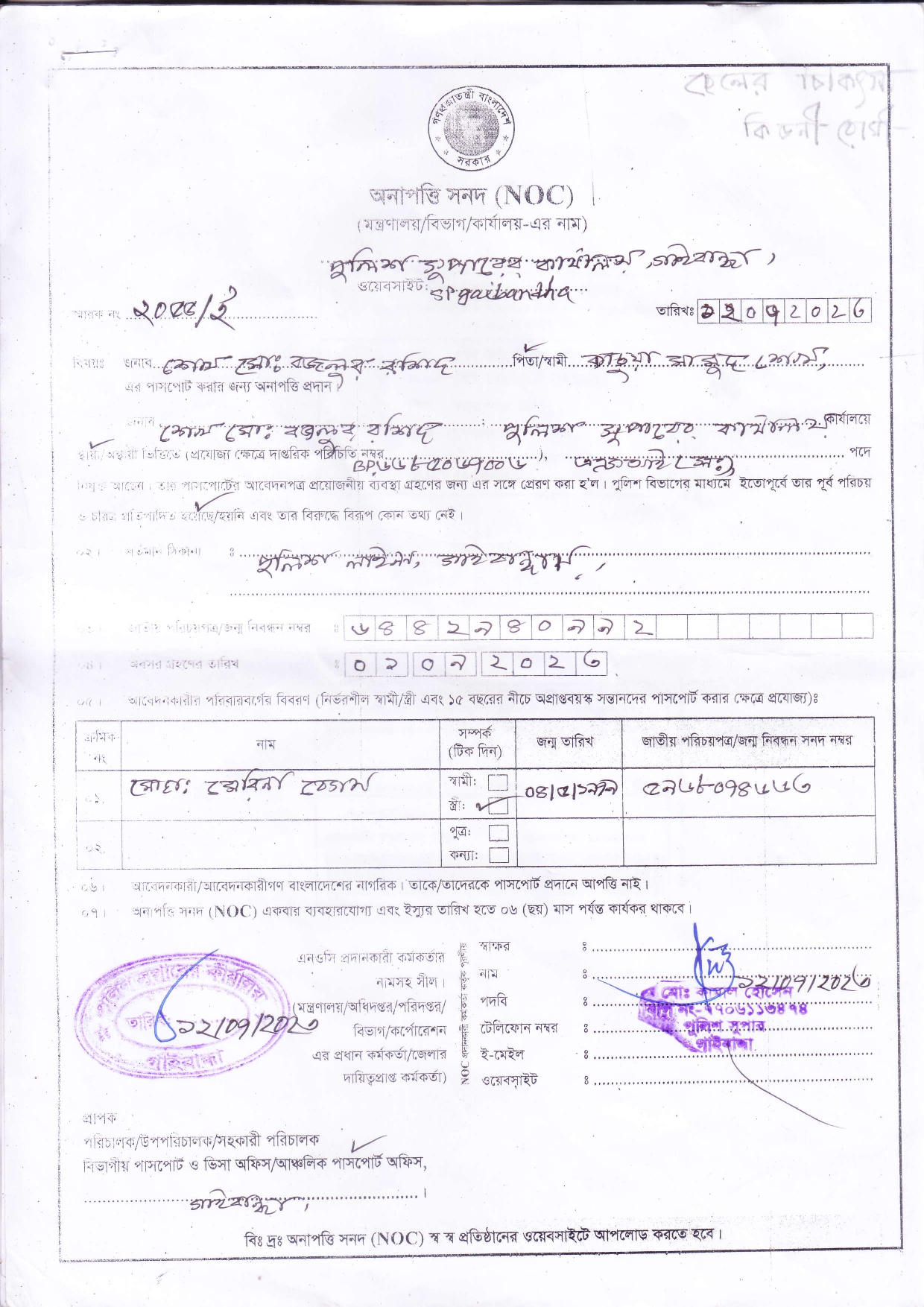 অনাপত্তি পত্র (এনওসি)